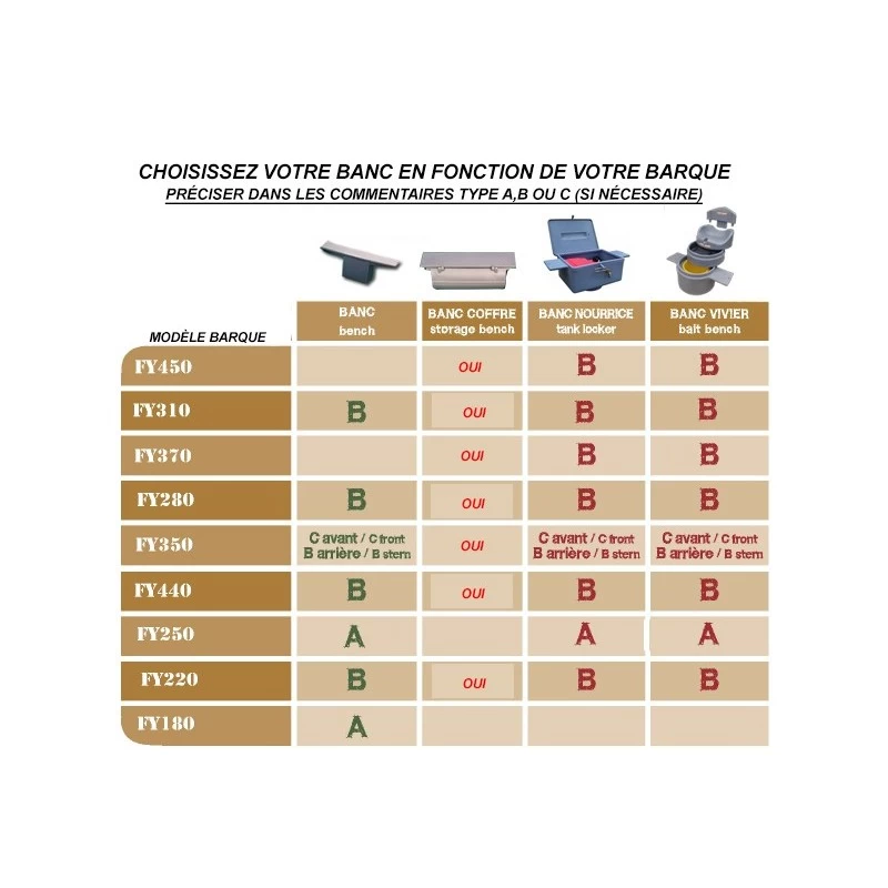 Il existe en différentes hauteurs suivant le modèle de barque et l’emplacement de celui-ci, donc à préciser dans la rubrique commentaire de votre commande