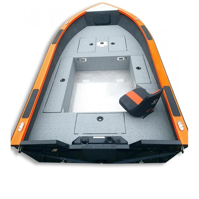 Bateau construit à partir d’aluminium marin PA13AW 5083 de la plus haute qualité, de 3 et 4 mm d’épaisseur, qui se caractérise par d’excellents paramètres de résistance et de résistance à l’eau de mer.