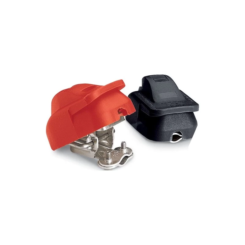 Ces cosses rapides simplifient les opérations de connexion et déconnexion d’une batterie. Vendues par deux, leurs couleurs distinctes donnent un repère de polarité. Le capot plastique élimine le risque de choc électrique.