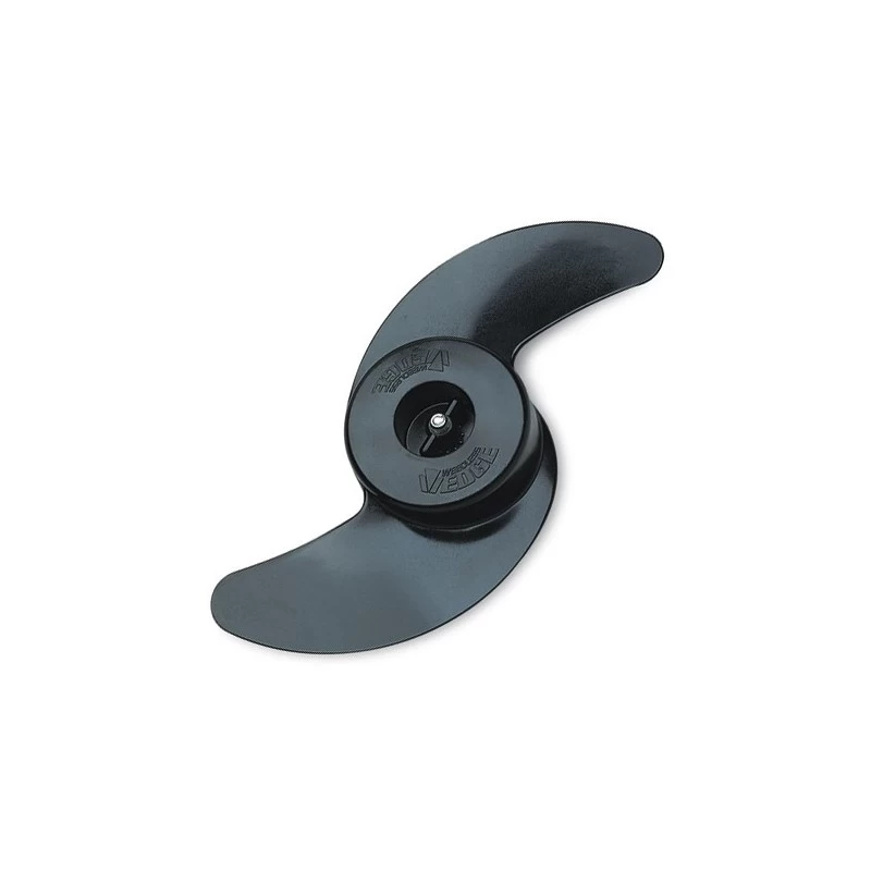 Cette hélice brevetée est la seule qui ne recueillera jamais d’algues. Un angle d’attaque inférieur à 45 degrés repousse en effet l’acrochage des végétaux immergés, même à faible vitesse.