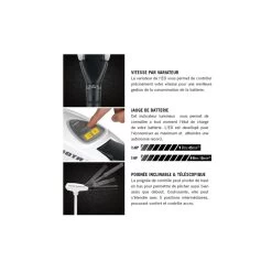 • Puissance de ½ HP(1) (12Vcc) – Autonomie : 465 min(2) (à 50%) ou 70 min(2) (à 100%).