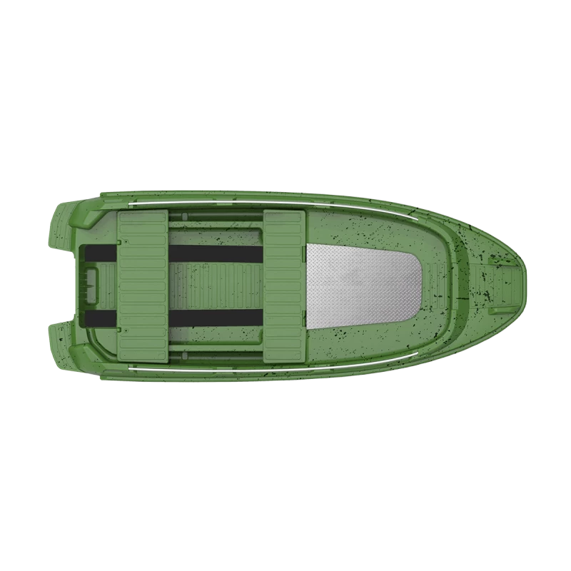 La version ROTO 450s FISHING comprend une banquette arrière verrouillable pour le réservoir de carburant et le rangement, une autre banquette avant avec une boîte de rangement, un couvercle en bois pour l’avant avec une plaque métallique, une plaque en acier inoxydable dans le compartiment de montage du moteur et une planche de contreplaqué étanche dans le compartiment de montage du moteur.