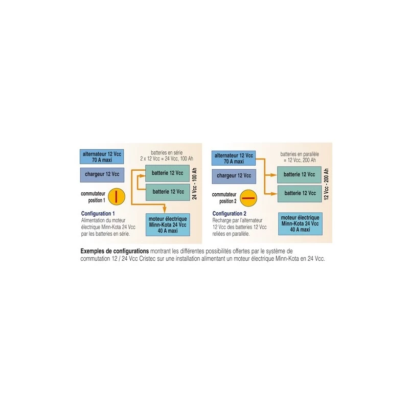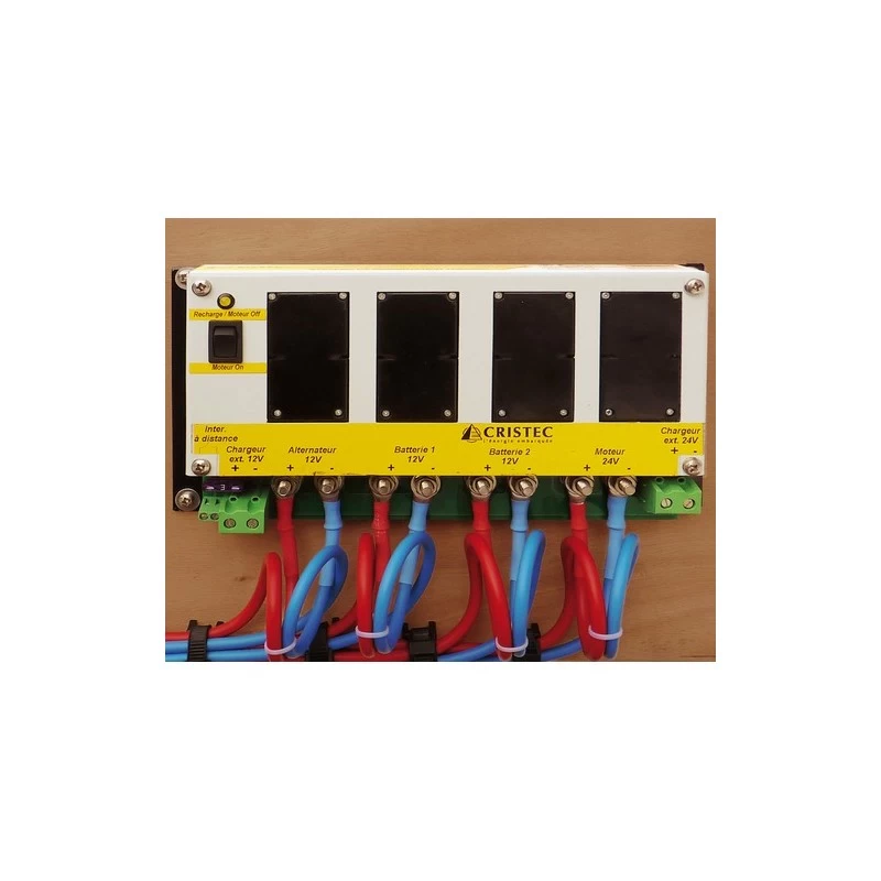 - Le commutateur Cristec utilise l’énergie fournie par l’alternateur du moteur thermique pour recharger le parc de batteries du moteur électrique par simple action sur un interrupteur. Sans le moindre effort.